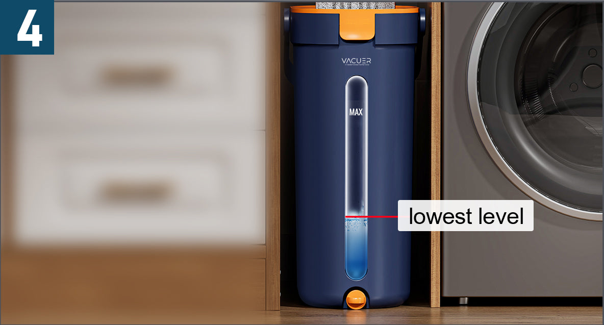 Ne dépassez pas la limite maximale indiquée lors du remplissage afin de garantir le bon fonctionnement du système. Ajoutez au minimum 0,5 litre d’eau propre pour assurer l’alimentation correcte de la pompe.