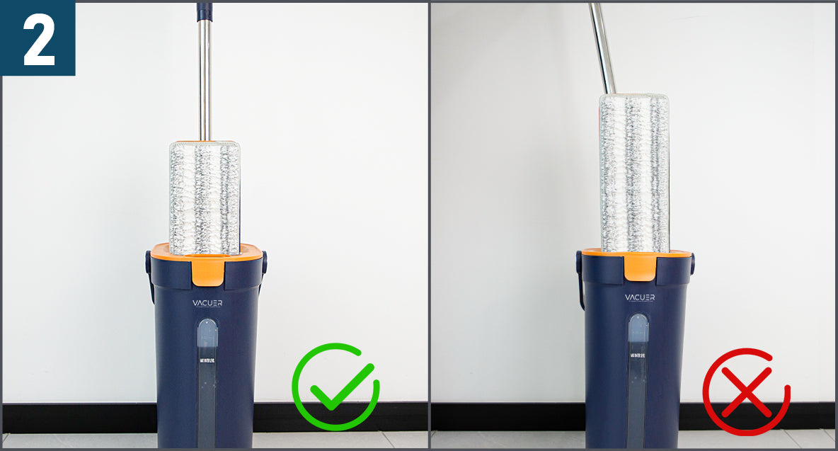 Lors du rinçage et de l’essorage, veillez à ce que la tête du balai et le manche soient bien alignés.